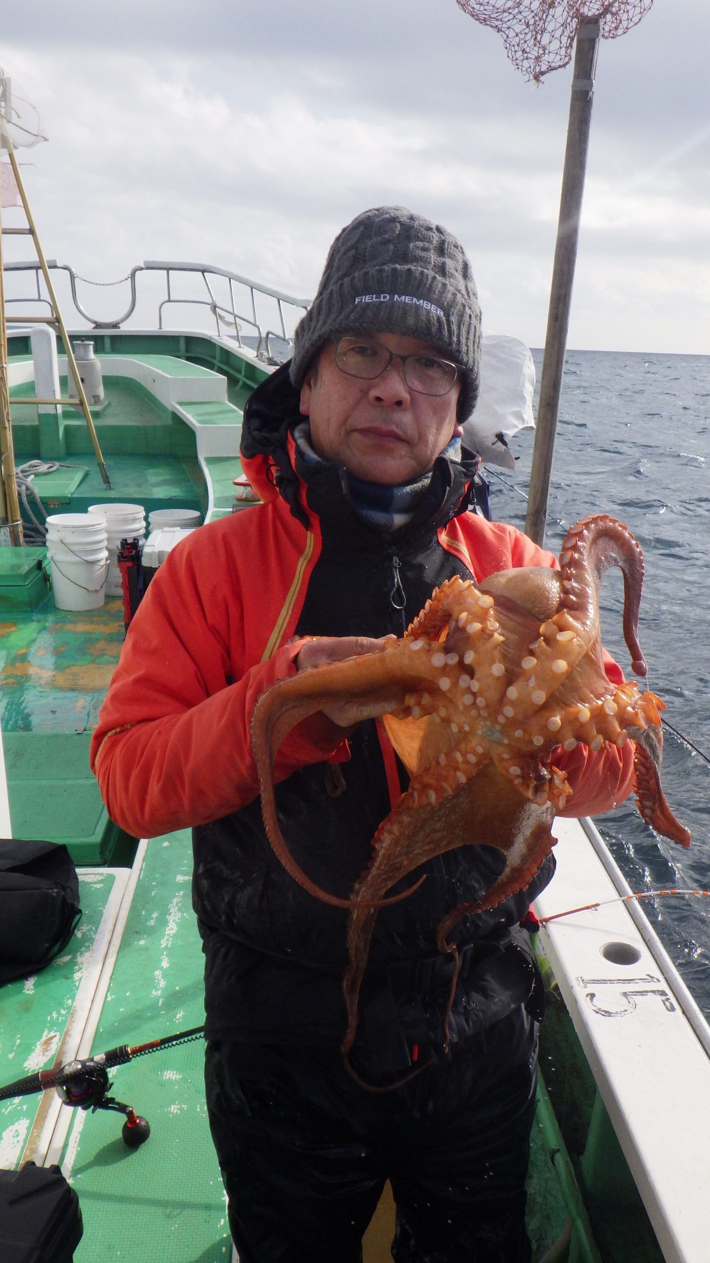 浅場で大型揚るも後が続かず、3ハイが数名居ました、竿先を下げちいる方の釣果が極端に悪いです。